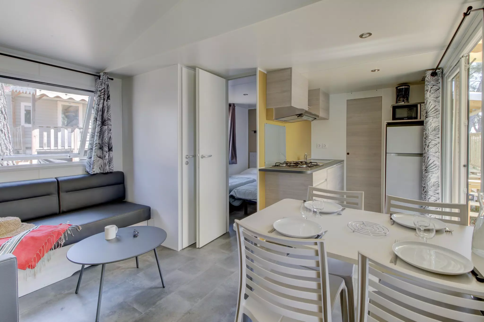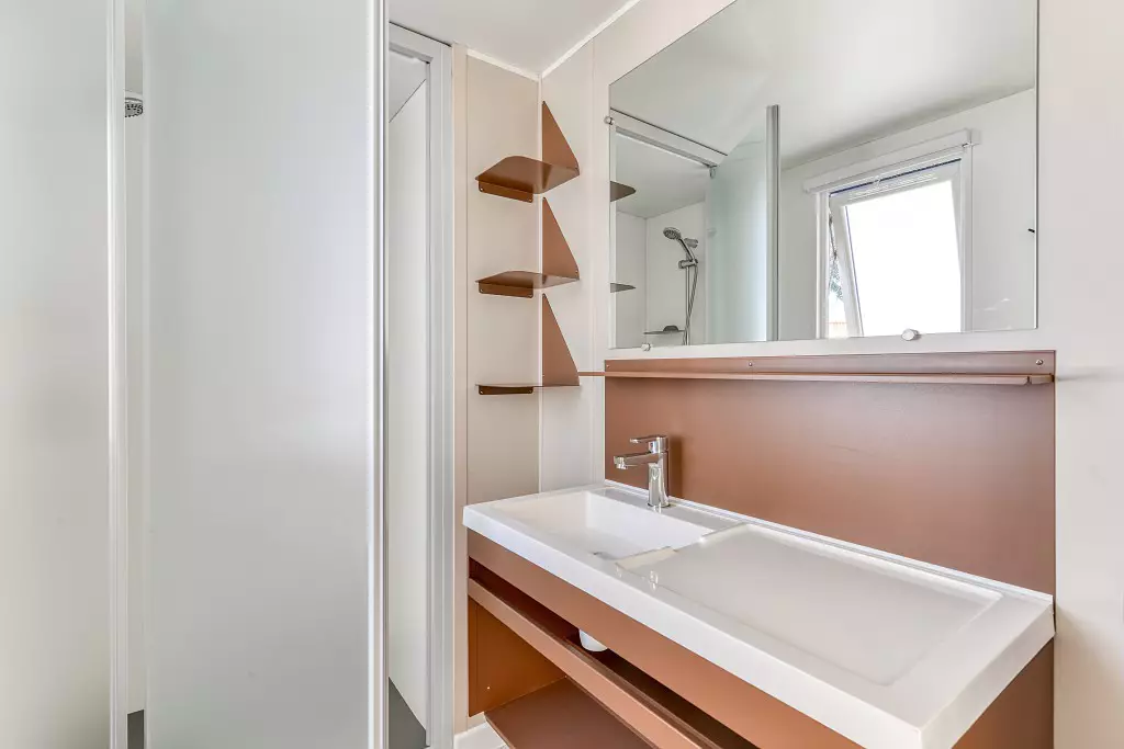 La nostra gamma Premium us ofereix una mobil home moderna i recent. La seva àmplia terrassa ombrejada en un entorn natural privilegiat i la qualitat dels seus equipaments interiors faran que les teves vacances siguin encara més agradable
