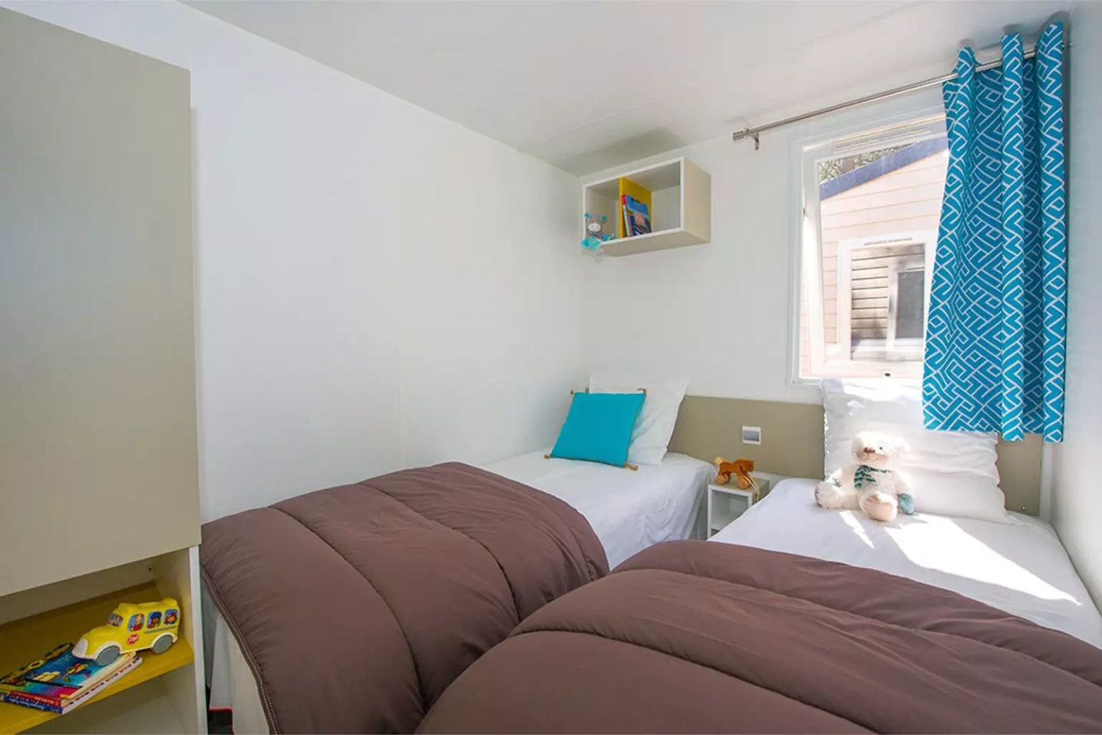 Per als que volen una mica més de confort, els mobil-homes Comfort compten amb dormitoris independents, cuina equipada i terrassa privada, proporcionant un espai modern on tota la família pot relaxar-se i compartir moments inoblidables.