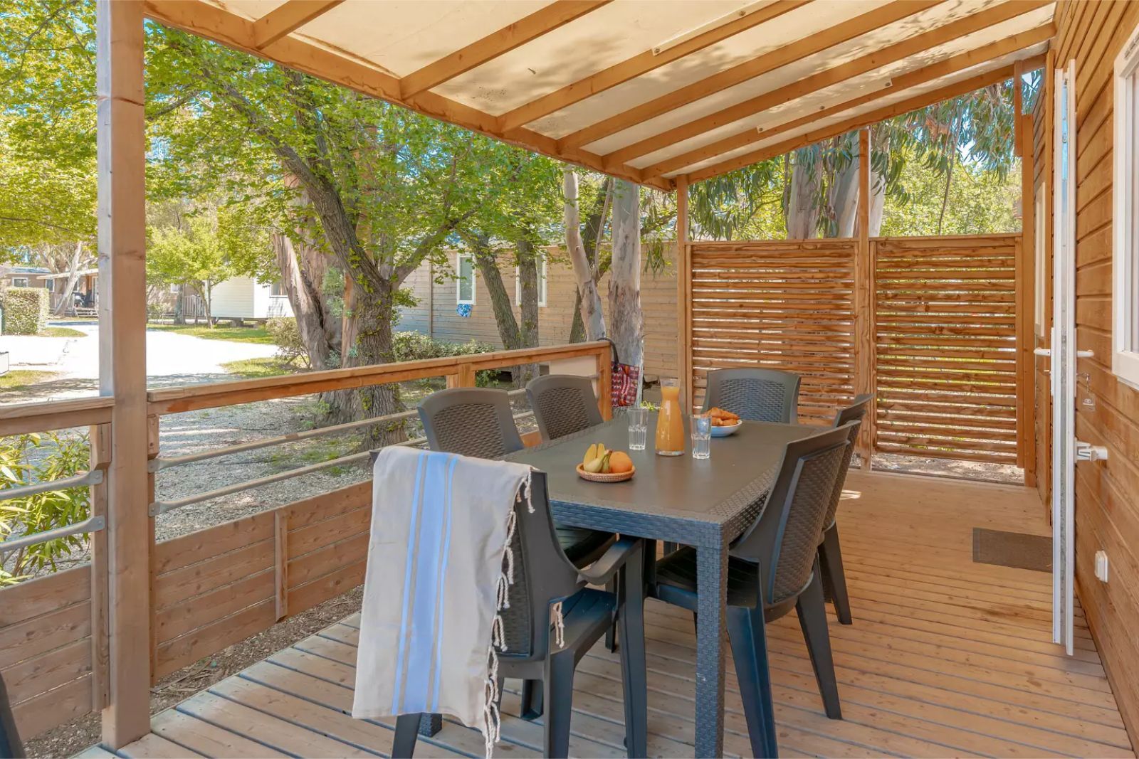La nostra gamma Premium us ofereix una mobil home moderna i recent. La seva àmplia terrassa ombrejada en un entorn natural privilegiat i la qualitat dels seus equipaments interiors faran que les teves vacances siguin encara més agradables.